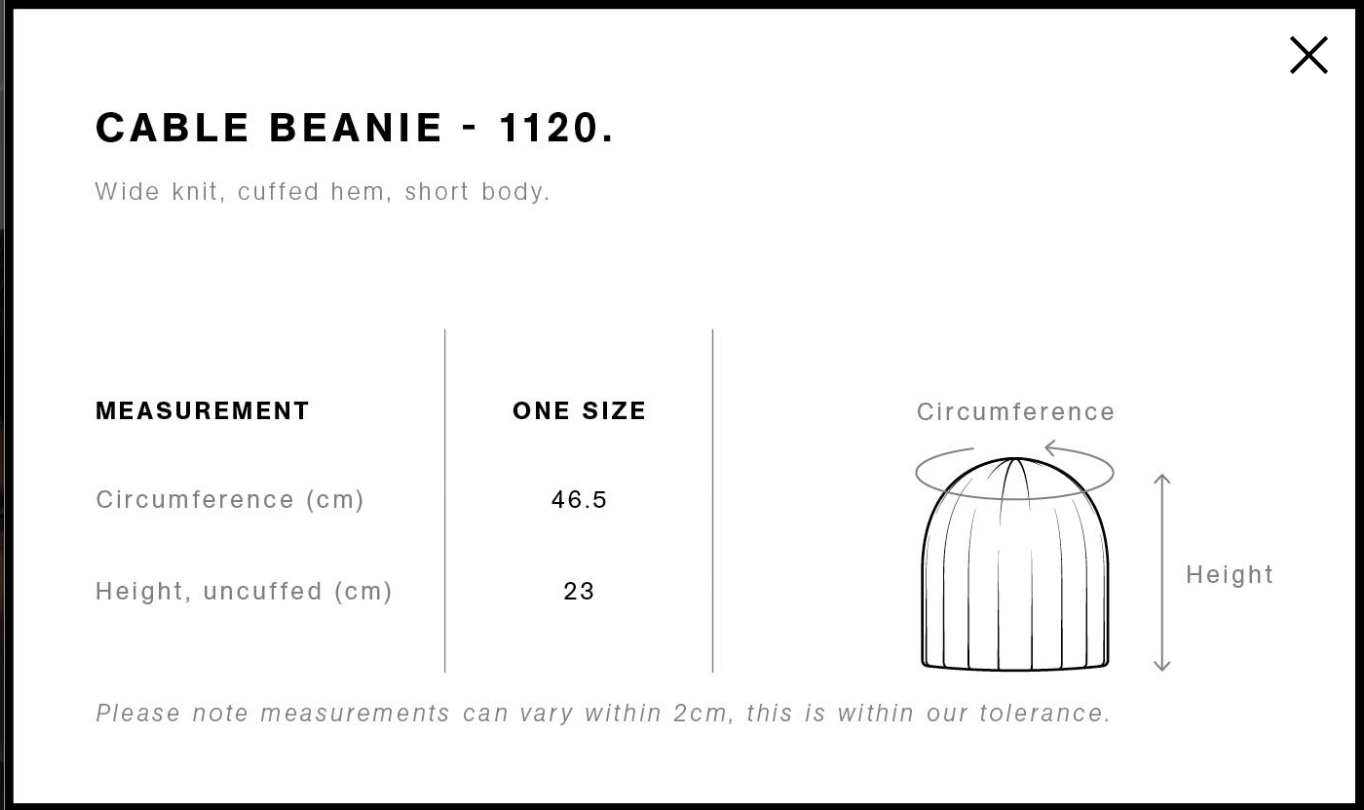 Construction: Fitted, fisherman style, wide ribbed knit